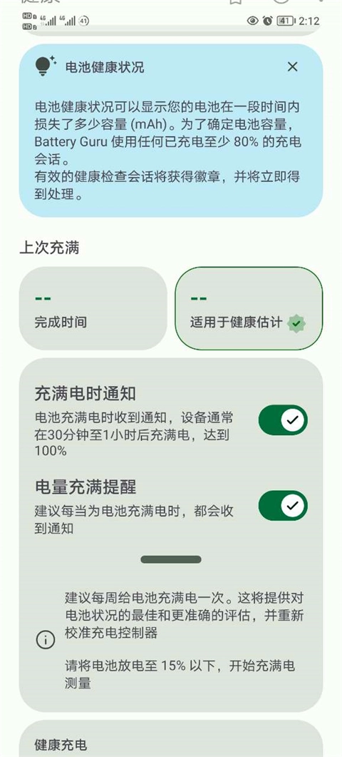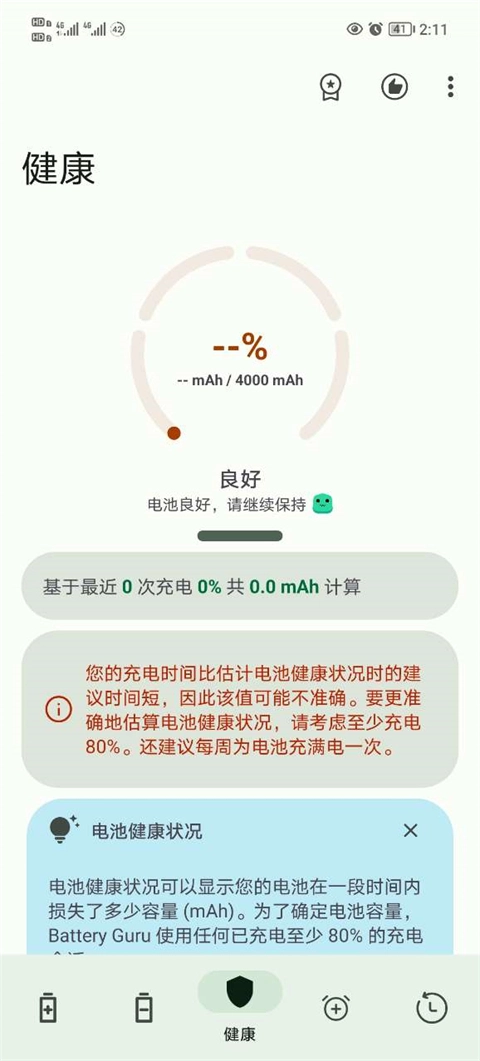 之后就会来到健康界面,在这里可以查看电池的情况。