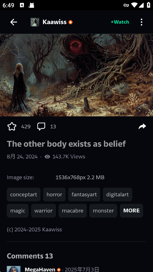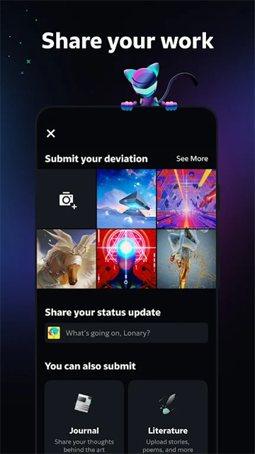Deviantart2026最新版本是一个以分享和发现原创艺术作品为主题的在线社区平台,DeviantArt App汇聚了超过1亿用户和6.5亿件作品,涵盖插画、摄影、3D艺术、文学等全领域创作,该应用功能丰富,支持作品展示和社交互动功能,还支持AI艺术创作、商业变现等功能。它是艺术家展示才华、获取灵感和实现创作价值的一站式平台,普通用户也能在这里欣赏到许多优秀的艺术作品!