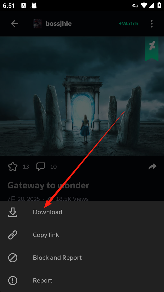 3、当你登录成功后就可以收藏并评论自己喜欢的绘画、素描等照片,你还可以点击右上角的“+Watch”进行分类,更好地管理图片。