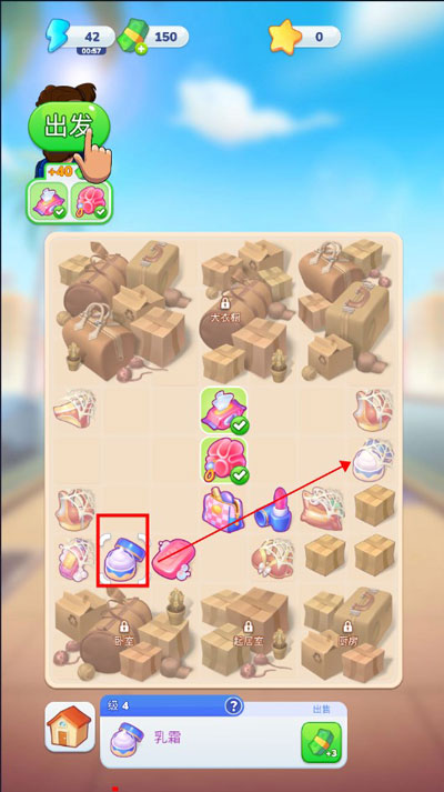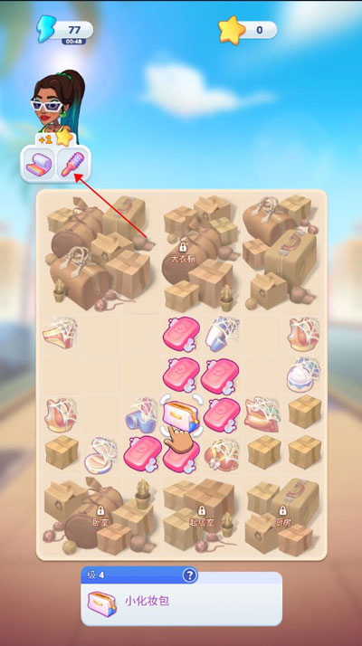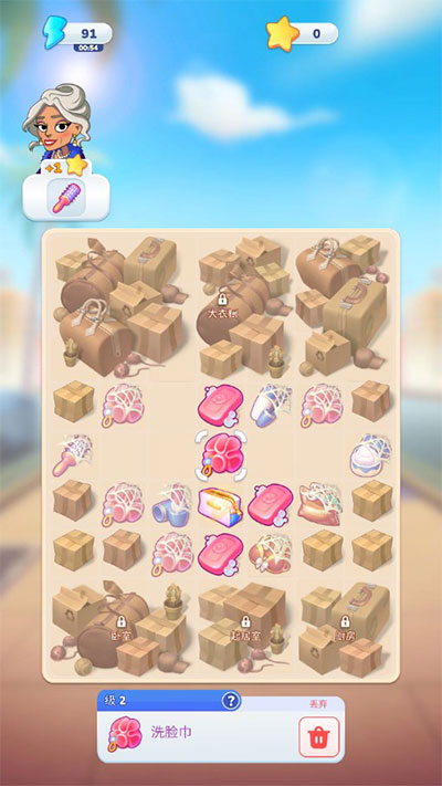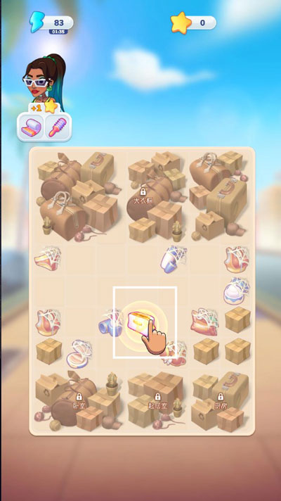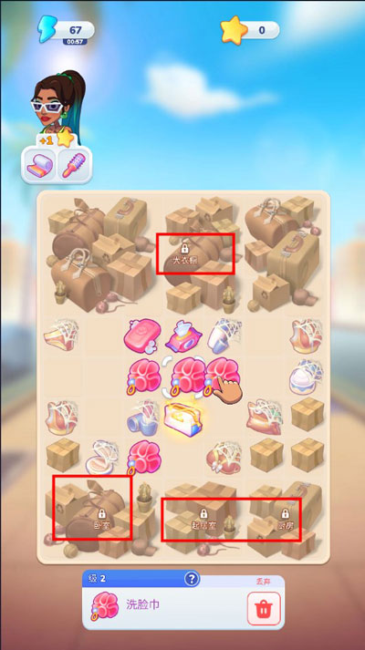 3、合成棋盘被划分成不同区域,涵盖厨房、衣柜、卧室等。游戏刚开局时,以帮杰西整理形象作为起始,所以初始阶段都是在合成各类洗漱用品。