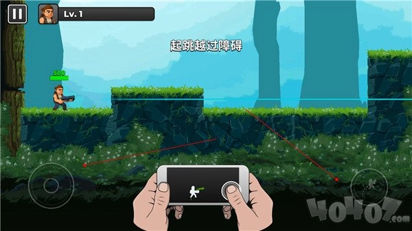 左手滑动控制方向,右手向上滑动让人物跳跃。