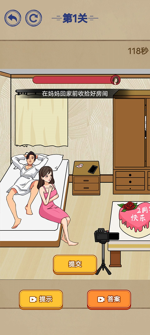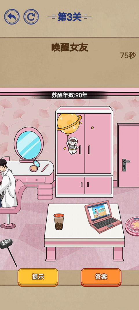 3、点击梳妆台上面的粉饼,敲击十下,把粉饼敲得稀巴烂,女友就会生气醒来。