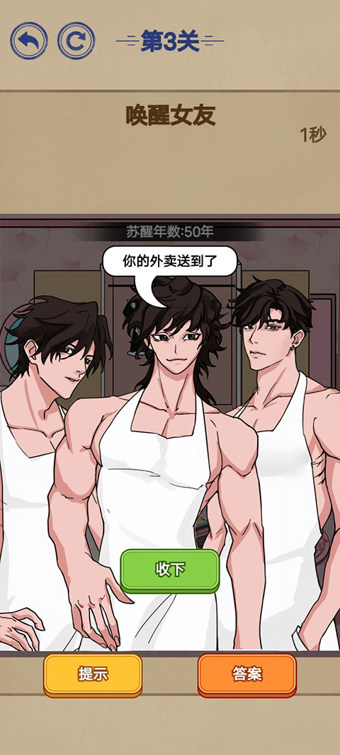 6、点击门会游肌肉男进来送外卖点击收下。