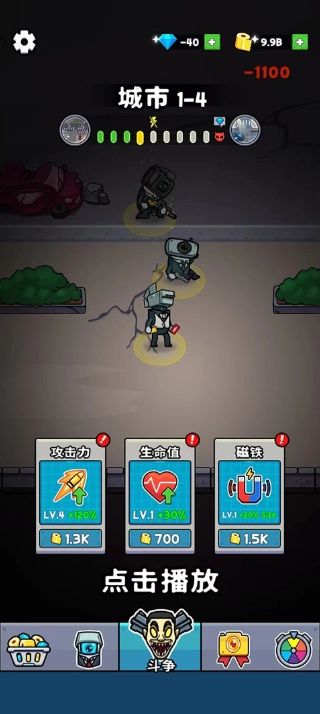 1、操控各式各样的电视人去和马桶人展开战斗,提升属性来应对更多强力敌人的挑战。