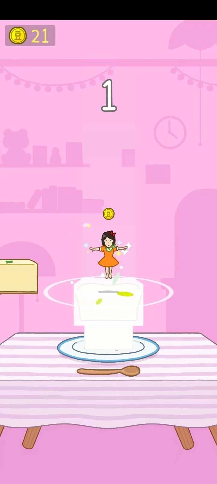 玩家将操控萌萌的豆腐女孩,在空中持续跳跃,稳稳落在每一块豆腐上面,只要稍有偏差就可能失足掉下去。