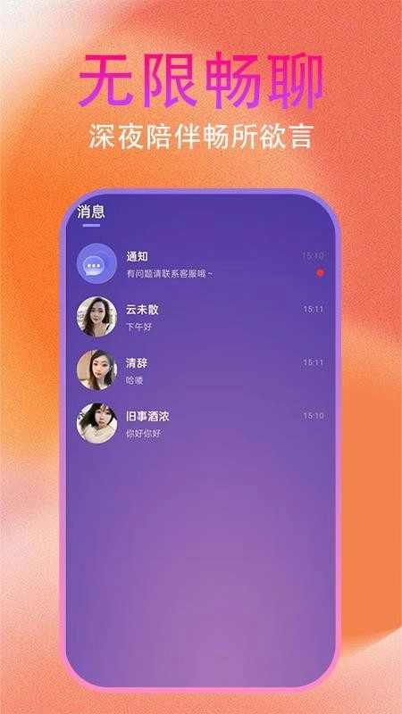 约友聊有效致力于为广大用户提供更简单便捷的社交服务,无论何时何地都能轻松找到合适的人进行互动,还可通过多种聊天方式,满足你在不同场景下的社交需求,让聊天变得更加轻松畅快;这是一个简单易用的掌上社交平台,采用全新的缘分匹配模式,能帮助你更简单高效地找到对的人,快来一起开启社交互动之旅吧!
