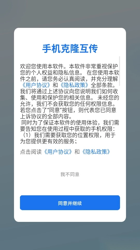 首先打开软件阅读说明,随后点击“同意并继续”按钮进入