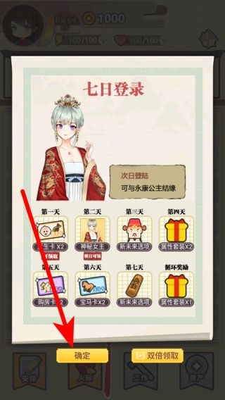 进入游戏后,会出现七日登录奖励的提示,点击确定就能领取对应天数的奖励,这些奖励能为后续的游戏进程提供帮助,开启游戏时获取第一步福利的操作十分简单。
