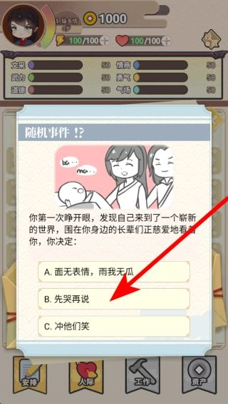 会触发随机事件,例如刚踏入新世界时,需要在不同的行动选项中做出选择,不同的选择可能导向不同的发展方向,得依据个人喜好或策略来进行挑选。
