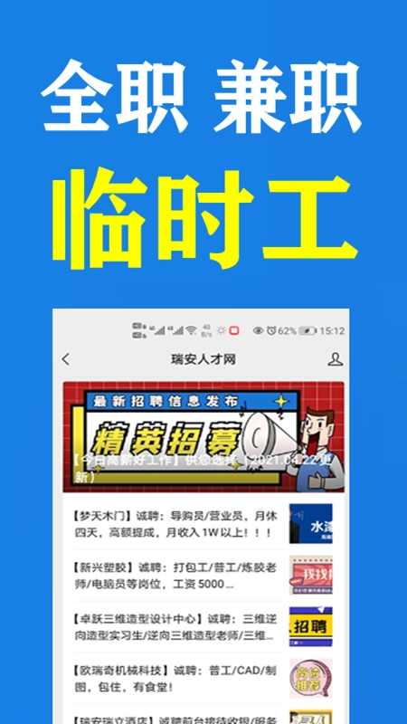 瑞安人才网App为瑞安本地搭建了一个优质的求职平台,让找工作这件事变得更轻松!