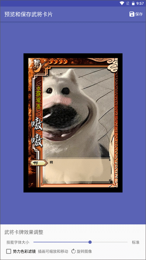 三国杀武将制作器最新版是一款专为三国杀爱好者设计的手机应用程序,它允许用户自由创作武将卡片,也被称为三国杀DIY卡牌制作器。该应用体积小巧,安装后即可立即使用,用户可以轻松浏览三国杀所有武将的图鉴资源。它支持制作身份局武将卡(包括2019年新界面)和双将模式的国战版本武将卡,同时提供自定义势力、卡牌颜色、卡包以及武将评语等个性化功能。