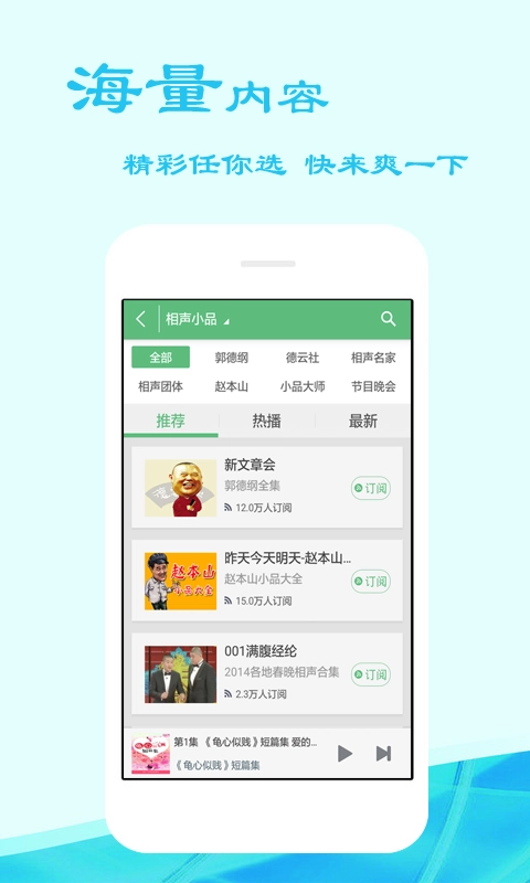 海量资源:拥有文学名著、有声小说等有声阅读资源,每天都有新的资源更新发布。百万有声小说免费,解放你的双眼,体验一级棒。