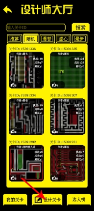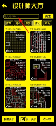 2、进入到设计师大厅之后,搜索id或者在下方选择热门的关卡进行挑战。