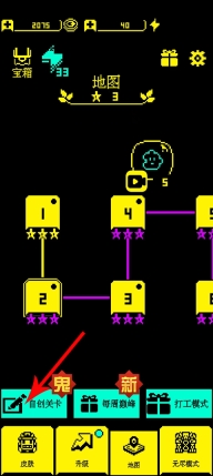 1、进入到游戏大厅之后,点击左下角的自创关卡,点击进入;
