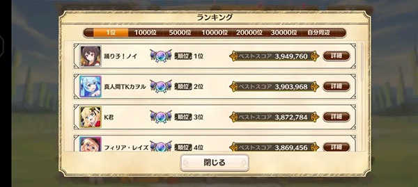竞技场分为普通场(附带排行榜)和EX场(无排行榜)。每日可挑战3次,双场合计6次,可获得竞技场币和累计积分奖励,进入排行榜还能获得额外奖励。(请勿使用,我曾添加过许多榜一玩家,他们在排行榜结算后便再未上线,疑似被封禁)。关于竞技场阵容搭配,可参考(https://gamewith.jp/konosubafd/)提供的队伍推荐,此链接为素晴手游日服wiki。日服排行榜前十中有一位是哔哩哔哩的up主,其UID为567912455,可参考他的队伍配置。此外,还可查看排行榜1至30000名玩家的阵容配置。