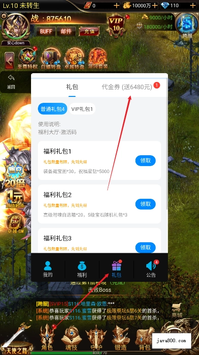3、点击礼包可以领取代金券