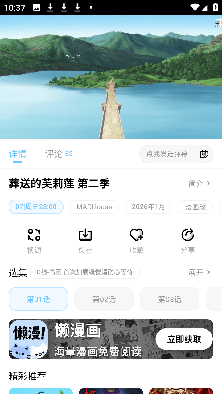3、选择一个你想想看的动漫进入,然后点击播放页面的换源。