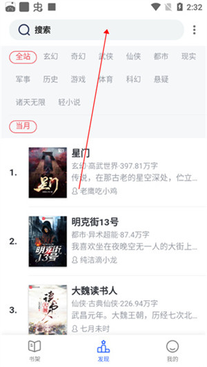 1、打开软件,“发现”界面拥有各个种类的小说,用户可以随意点击一本阅读;