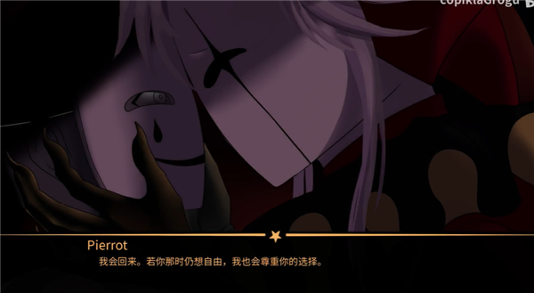 选择优先回应Pierrot的偏执情感,触发其专属剧情线。在咖啡馆互动中持续满足其控制欲,最终将引发皮埃罗与丑角正面冲突,玩家需通过关键对话选项控制事态发展。