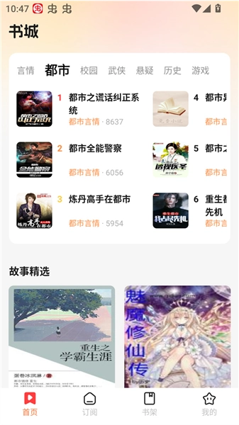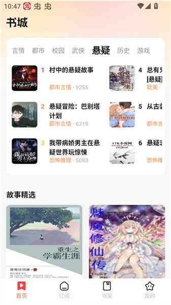 小说分类:依据小说的题材类型进行划分,便于用户根据自身的题材偏好查找小说资源来阅读。