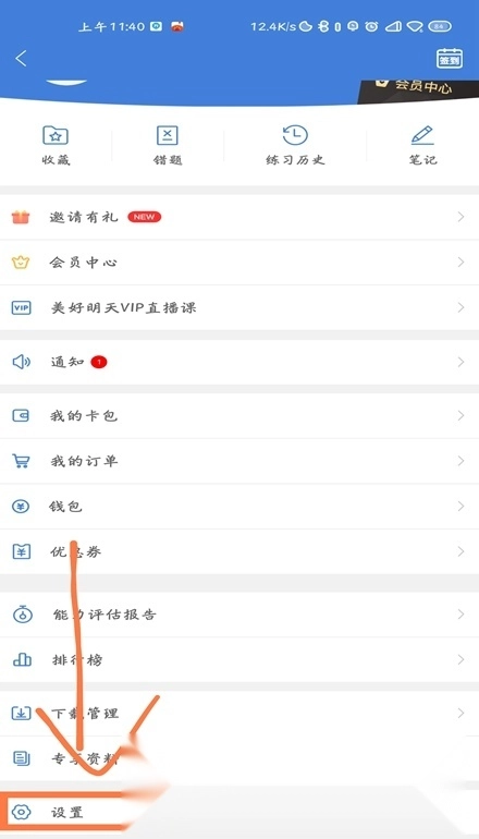 在打开的页面里滑动到最下方,找到并进入“设置”选项。