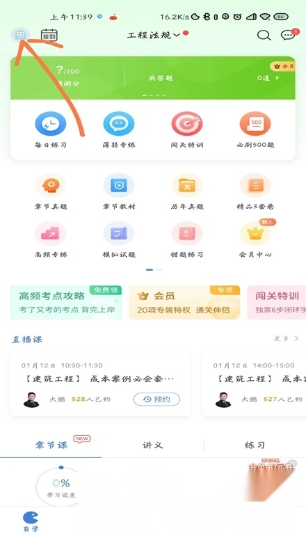 打开手机上的应用,进入首页后,点击页面左上角的个人头像。
