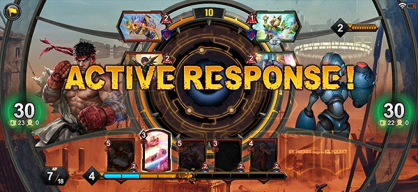 当一张行动卡牌被打出,时间即刻暂停,战斗随即进入Active Response阶段。在玩家打出行动卡牌之后,对手便可以打出自身的行动卡牌以作响应。