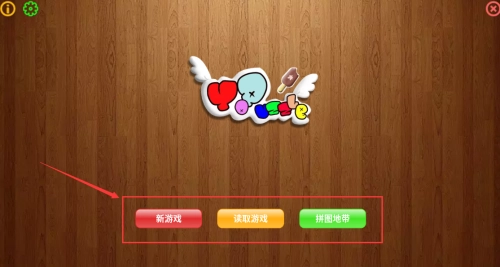 点击红色的“新游戏”按钮即可开启冒险之旅,若想继续之前的进度,可点击黄色的“读取”按钮,而绿色按钮则对应进入拼图模式的功能。