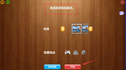 你可以选择经典模式或者挑战相册,点击开始按钮就能开启图片拼图游戏啦。