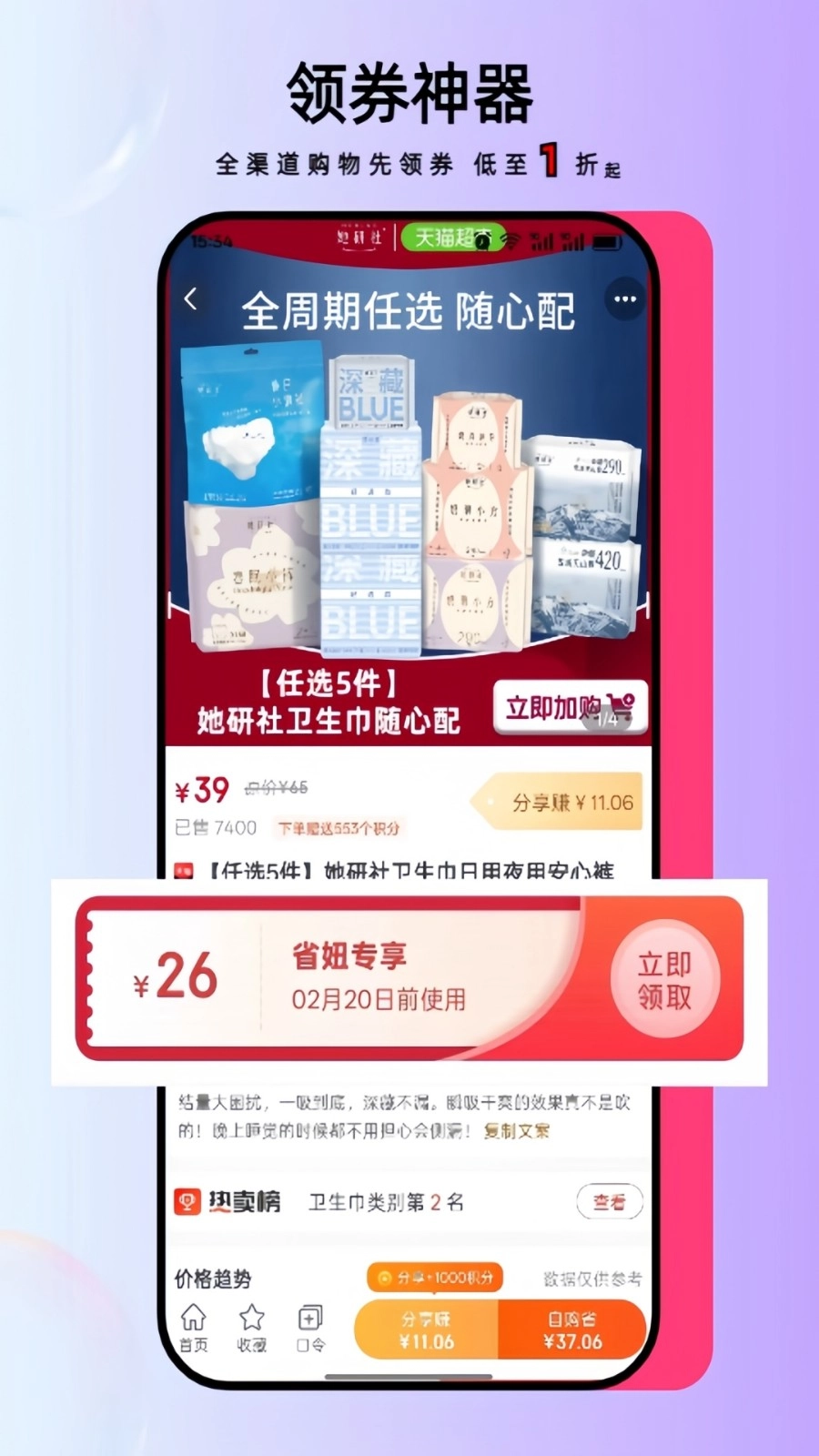 支持全渠道先领券再购物,省钱金额直观可见,优惠力度清晰;