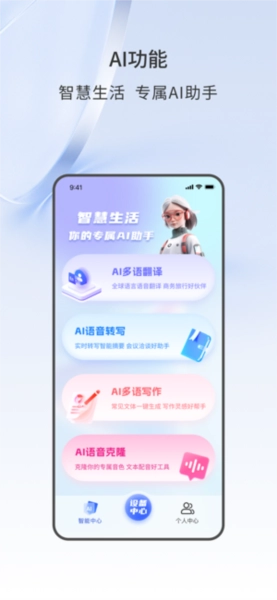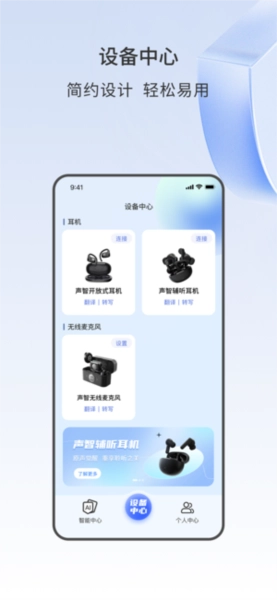 声智作为融合翻译转写与设备管理功能的新一代智能助手,致力于打破沟通壁垒、优化操作步骤。该应用程序既能便捷管理耳机、无线麦克风等各类设备,又依托人工智能技术,通过声智软件实现多语言翻译、语音转文字、语音克隆等多样化服务,覆盖生活中的不同场景,让用户获得科技加持下的无障碍沟通体验。