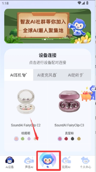 打开声智应用后,在主界面找到并点击“设备管理”选项,接着选择“添加设备”,随后按照页面提示,借助蓝牙功能完成耳机或麦克风与手机的配对连接操作。
