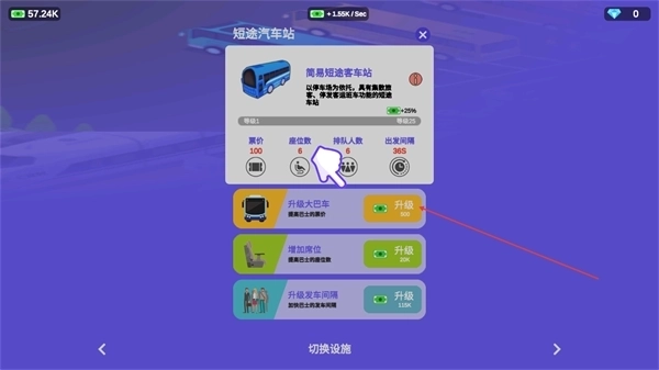在短途汽车站界面点击购入新增车辆,也可以通过升级扩大大巴等设施来提升运力。