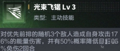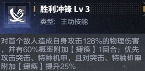 一技能对3个目标造成215%的物理伤害,二技能是单体475%伤害,并且对低血量机甲额外有30%伤害提升,对突击/特种机体同样也有30%伤害提升。