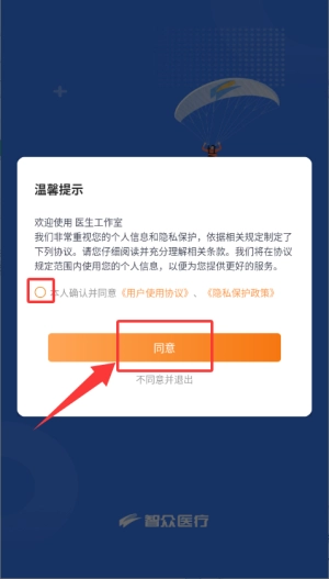 在温馨提示里勾选相关协议,再点击“同意”按钮,就能进入应用了。