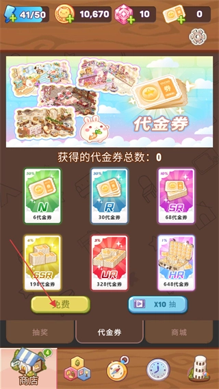 新手玩家能在商店里获得一次免费抽取代金券的机会,点击免费按钮就能抽取。