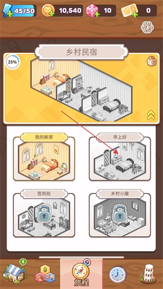 在旅程页面里,点击下方尚未完成拼装的房间,消耗左上角的体力值就能进入挑战。