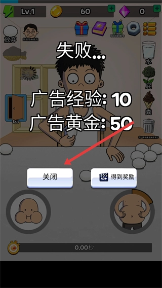 结束未完成目标,会显示失败,点击关闭重新挑战。