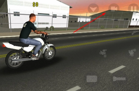 屏幕右侧设有翘车头和后退的按键,左下方则是控制左右转弯的按键,玩家可通过这些按键操控摩托车完成前进、后退、转弯以及特技动作等操作。