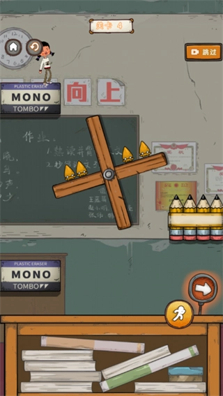 操作课堂里的机关装置,比如杠杆这类,按照提示来操作它们,以此为逃学创造有利条件,完成课堂操作层面的突破。