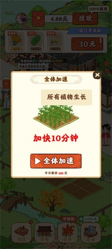 可以点击全体加速,帮助茶叶快速成长。