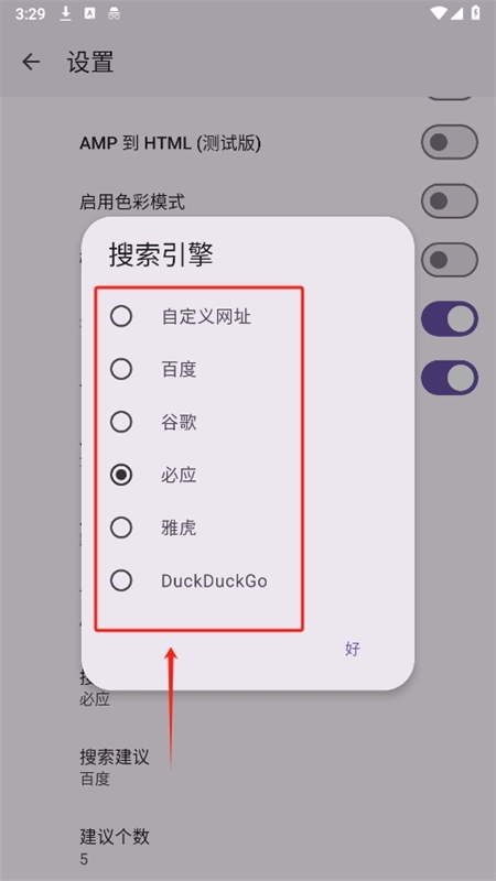 进入设置界面后,你可以依据自身需求切换各类搜索引擎,也能够对网址进行自定义设置。
