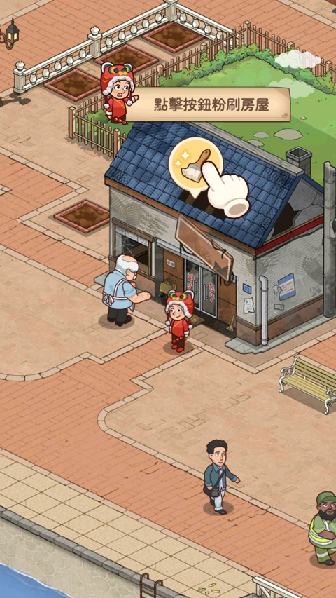 按照引导提示来操作,第一步要点击按钮给小屋重新刷漆。