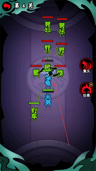 在战斗过程中,玩家可以操控自己的角色释放爆龟、火勇等技能来攻击敌方单位,还能借助“集火”技能把火力集中到单个敌人身上,以此快速降低其生命值。