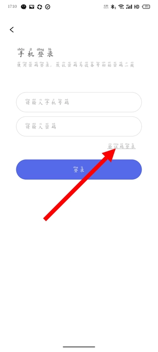 在登录方式选择页面,选择其他手机号码登录选项,即可进入登录页面。