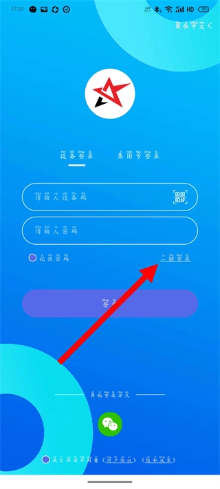 打开智安星定位器,进入设备登录界面,依次输入设备号与密码,然后点击登录按钮即可完成登录操作。