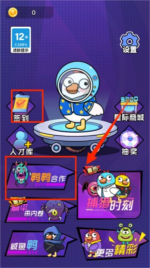 点击鸭鸭合作就能进入游戏啦,开始之前别忘了先签到领取奖励哦。