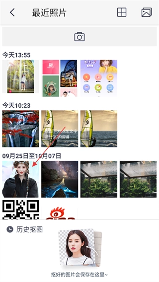 在最近照片选择页面,挑选需要进行抠图操作的照片,随后进入抠图编辑界面。