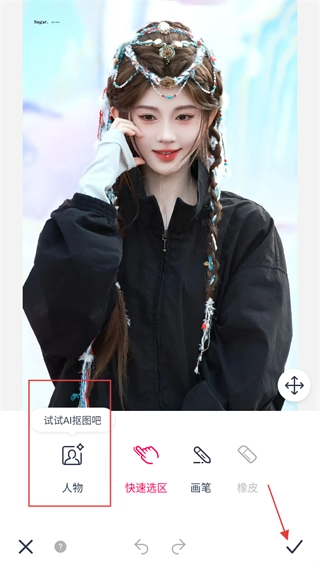 在抠图编辑界面,选择人物抠图的模式,操作完成后点击确认按钮,就能完成抠图操作。