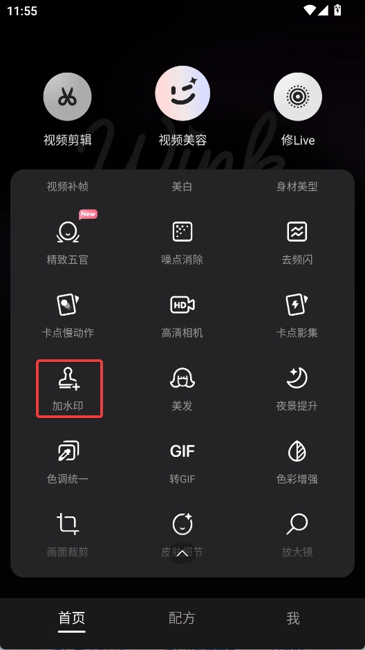 Wink最新版,在首页找到加水印功能,点击进入